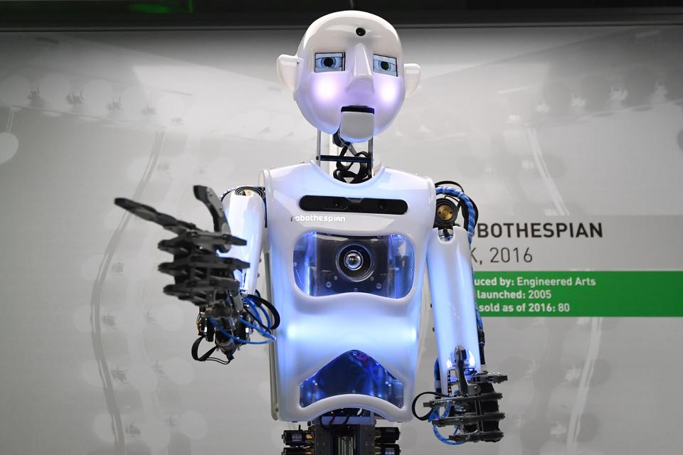 A robot produced by Engineered Arts named 'Robothespian' UK, 2016 is on view at the ROBOT exhibition at the Science Museum in London on February 7, 2017. (Photo credit BEN STANSALL/AFP/Getty Images)